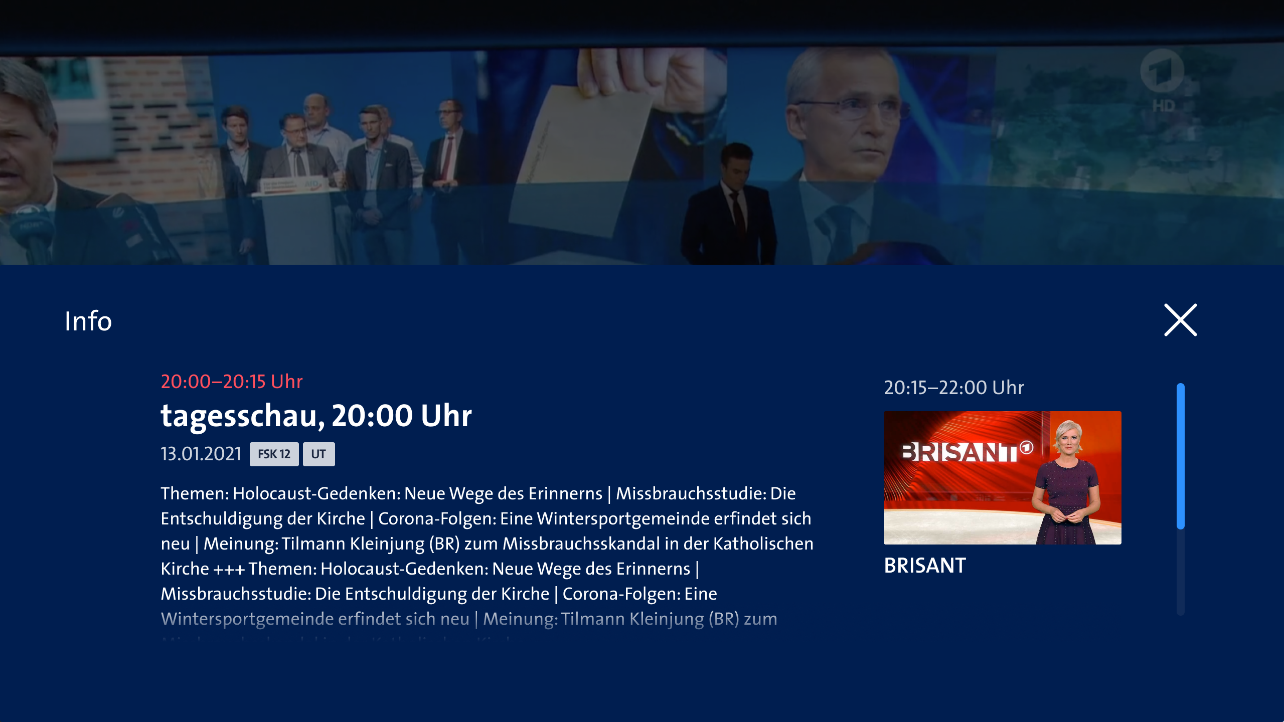 When using the arte player, I was positively impressed by the fact that the most important functionality (program) was located so close to the player and the visual hierarchy (large timestamps) was adapted to this.