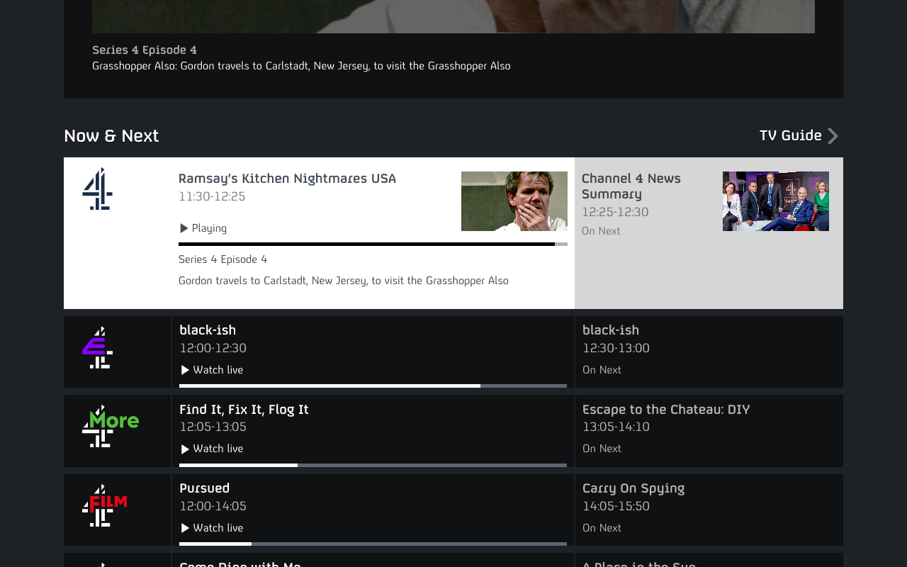 What stood out positively on BBC4 was how the current and following programs were announced: "Now & Next" with a very intuitive layout (2:1 ratio).