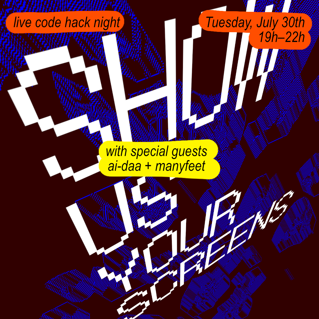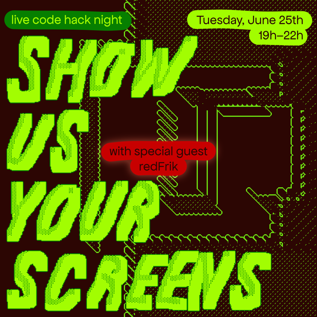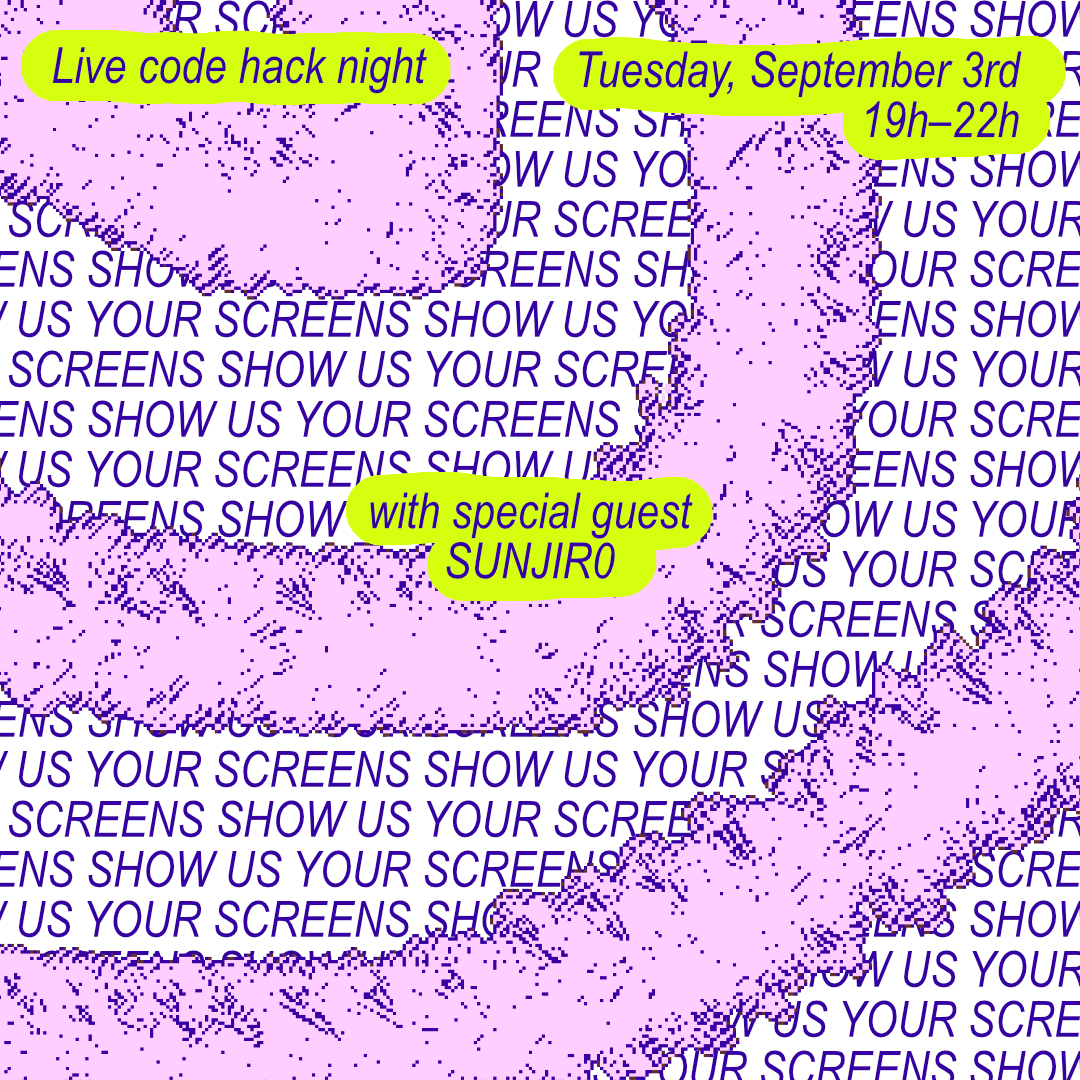 Digital flyers for live coding meetup SHOW US YOUR SCREENS