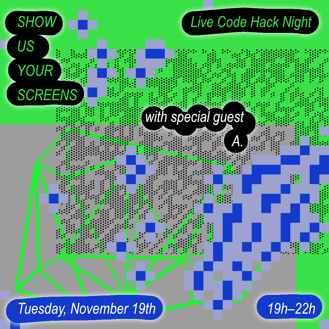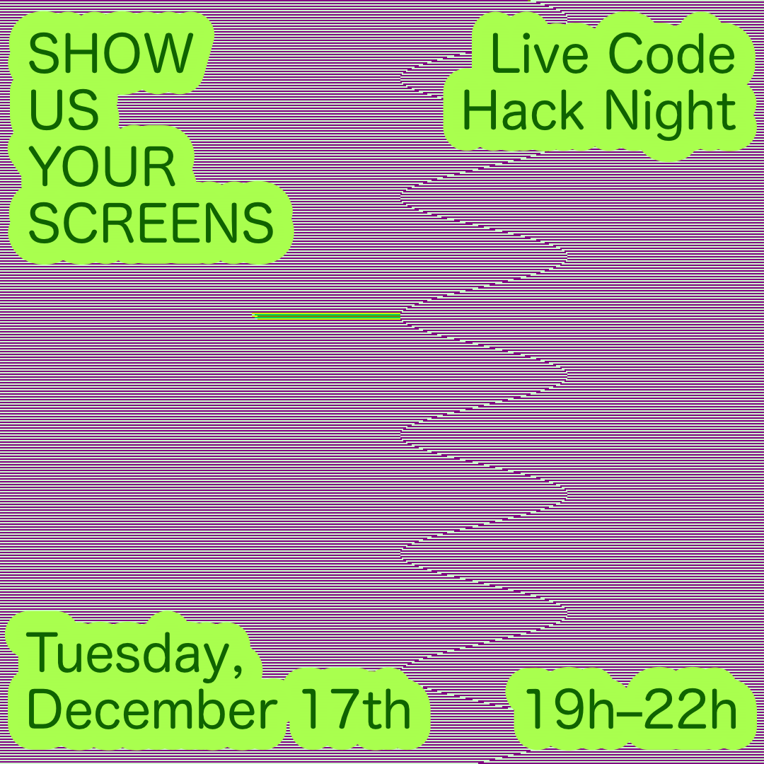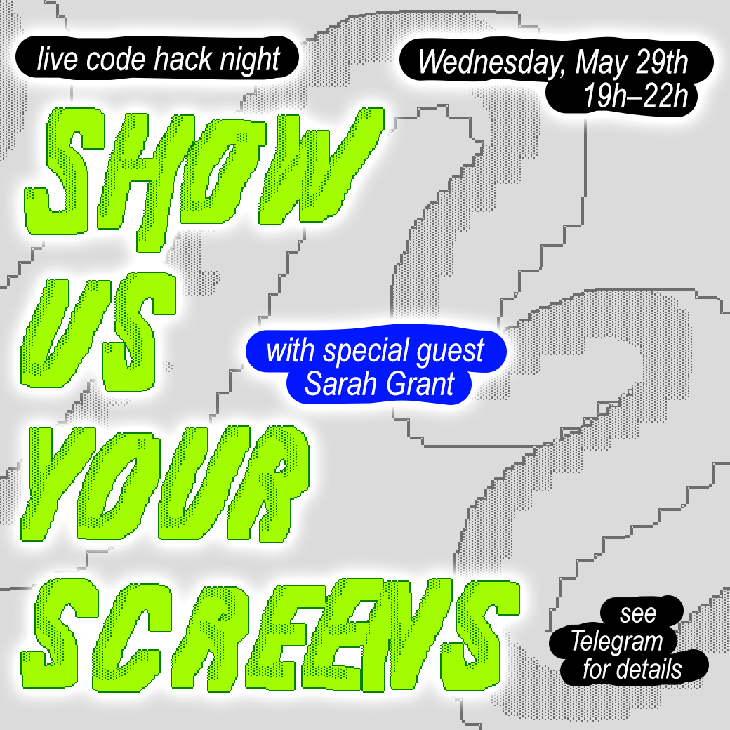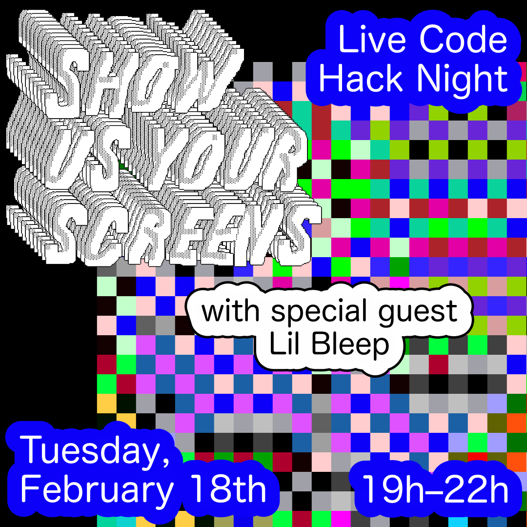 Digital flyers for live coding meetup SHOW US YOUR SCREENS